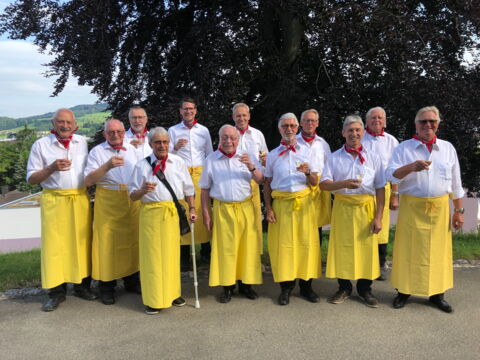 Gossau, An der letzten Probe vor den grossen Sommerferien luden die Sänger welche in diesem Jahr einen runden Geburtstag feiern dürfen, zur traditionellen Geburtstagsfeier.