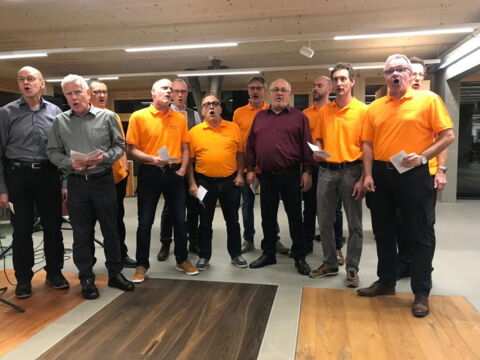 Die VK, unübersehbar in den orangen Poloshirts (Lieblingsfarbe unserer Dirigentin) rundete diesen gelungenen (manche sagen auch best Ladies Night ever) Abend über den Wolken von Gossau mit Riisnägeli und Holzmichel ab.