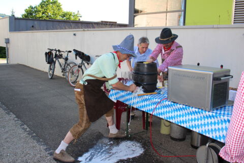 Passend zum lauen Sommerabend stand die Feier unter dem Motto "Bierfest". Mit einem feuchten, schon beinahe nassen Fassanstich eröffneten die Jubilare das Fest, welches dieses Jahr bei durstigen Temperaturen im Freien durchgeführt werden konnte. Im Anschluss gab es für die ganze Gesellschaft Salat, geschmorte Haxen und Nussgipfel. Für die Unterhaltung sorgten die Jubilare gleich selbst und zwar mit Geschichten und Lieder über den köstlichen Gerstensaft sowie träfen Versen zu den einzelnen Geburtstagskindern. Zum Andenken an den schönen Abend erhielt jeder Sänger ein "Männerchor Gossau Bierglas", welches speziell für den Anlass mit Logo und Schriftzug versehen wurde.